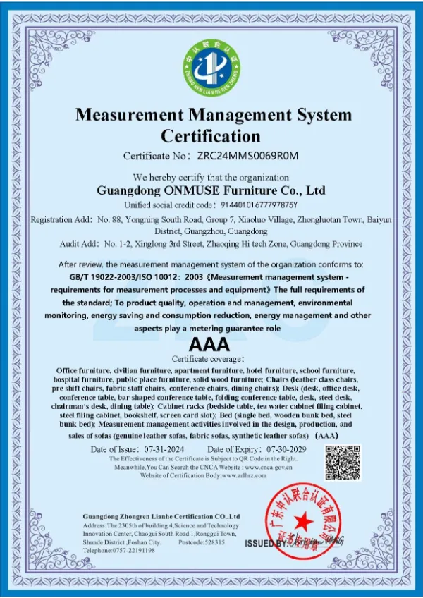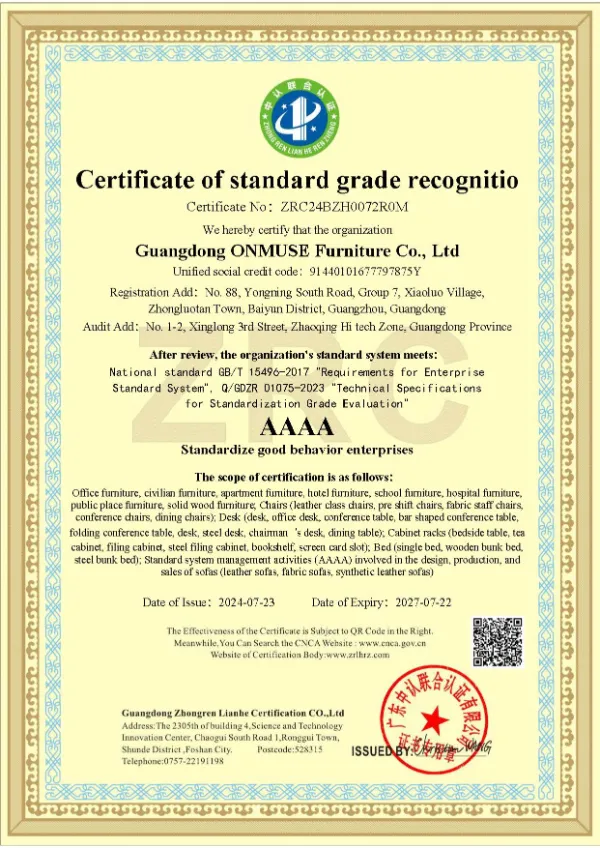 ONMUSE के उत्पाद न केवल पूरे चीन में वितरित किए जाते हैं बल्कि दुनिया भर के कई देशों में निर्यात भी किए जाते हैं। यह हमारी मजबूत विनिर्माण क्षमताओं और व्यापक बिक्री नेटवर्क को प्रदर्शित करता है। सटीक बाज़ार स्थिति और एक विश्वसनीय आपूर्ति श्रृंखला के साथ, हम समर्पित हैं वैश्विक ग्राहकों की विविध आवश्यकताओं को पूरा करने के लिए उच्च गुणवत्ता वाले फर्नीचर और उत्कृष्ट सेवा प्रदान करना।