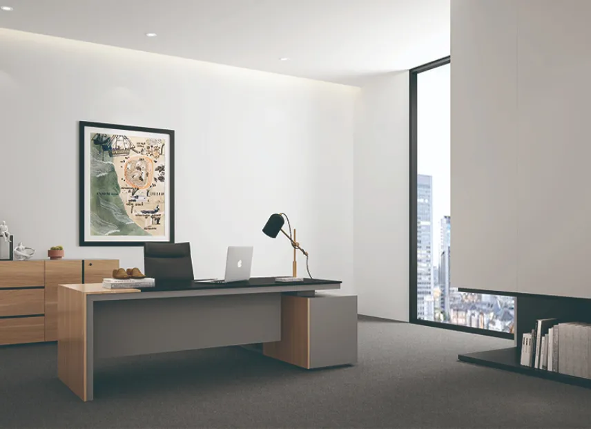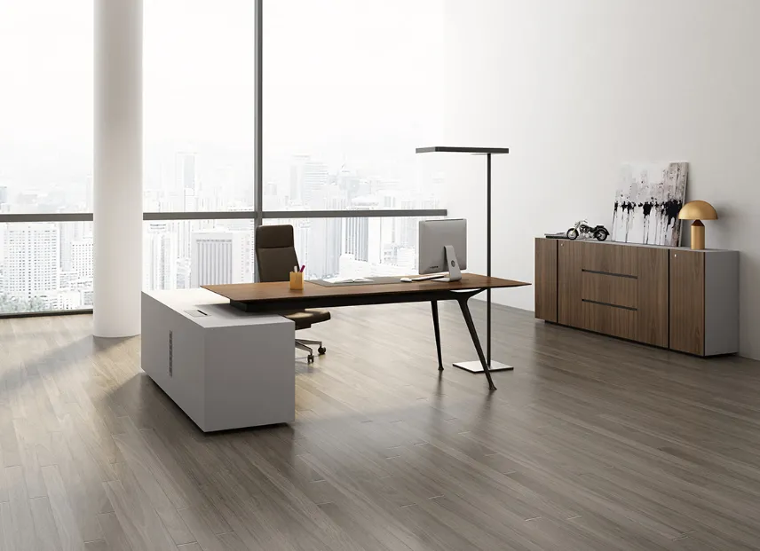 बेवेल्ड डेस्कटॉप डिज़ाइन उल्लेखनीय परिष्कार के साथ लकड़ी की प्राकृतिक सुंदरता और बनावट को उजागर करता है। स्लाइडिंग दरवाजे और दराज के साथ एक एकीकृत बड़ी क्षमता वाली साइड कैबिनेट अधिक मांग और जटिल प्रबंधन आवश्यकताओं को पूरा करती है।