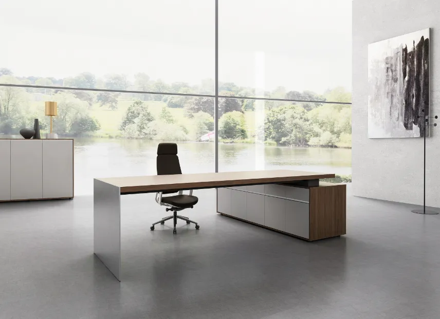 मेटाली एक्जीक्यूटिव डेस्क कठोर धातु की ताकत और गतिशील सुंदरता के बीच एक अद्भुत संतुलन का प्रतीक है, जो एक ऐसा लुक पेश करता है जो स्टाइलिश और परिष्कृत दोनों है।