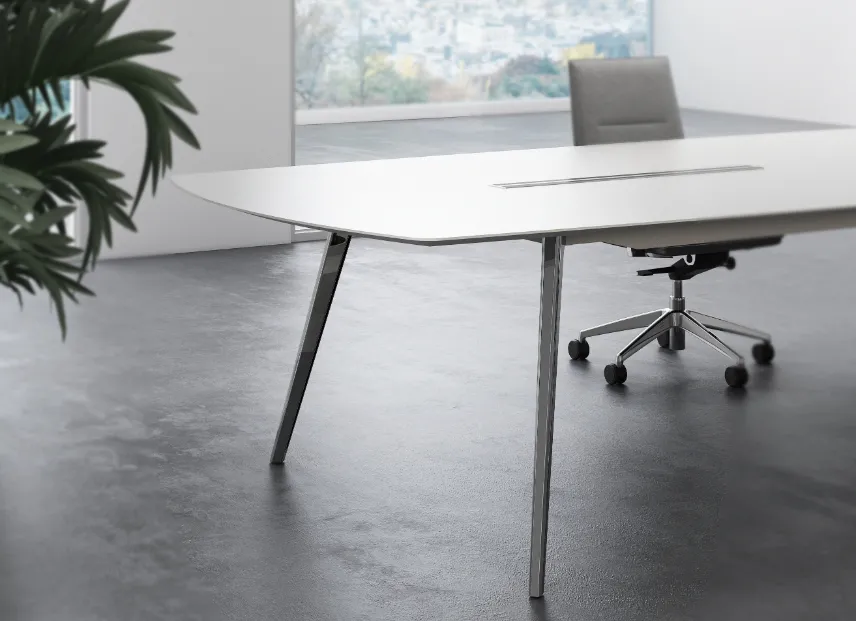 किनारे पर एक छिपी हुई बहु-कार्यात्मक केबल प्रबंधन प्रणाली डेस्कटॉप को साफ और व्यवस्थित रखती है।