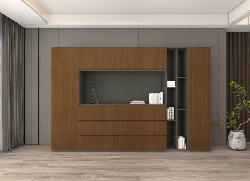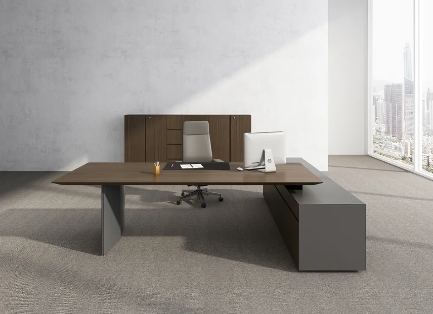 टाइम सीरीज़ आधुनिक कार्यालय फ़र्निचर डिज़ाइन को तर्कसंगत, सुरुचिपूर्ण कार्य वातावरण के साथ एकीकृत करती है। अखरोट की लकड़ी और काले चमड़े की सतहों का संयोजन परिष्कार और शांति की भावना जोड़ता है, जो समकालीन प्रबंधकों की शैली के लिए बिल्कुल उपयुक्त है। कार्यकारी डेस्क के साइड कैबिनेट में दराज, सीपीयू भंडारण और विभाजित शेल्फिंग की सुविधा है, जो सुव्यवस्थित भंडारण की अनुमति देता है। व्यावहारिक फिर भी परिष्कृत, डिज़ाइन विभिन्न उद्योगों में पेशेवरों की विविध आवश्यकताओं को पूरा करता है।