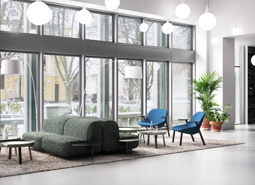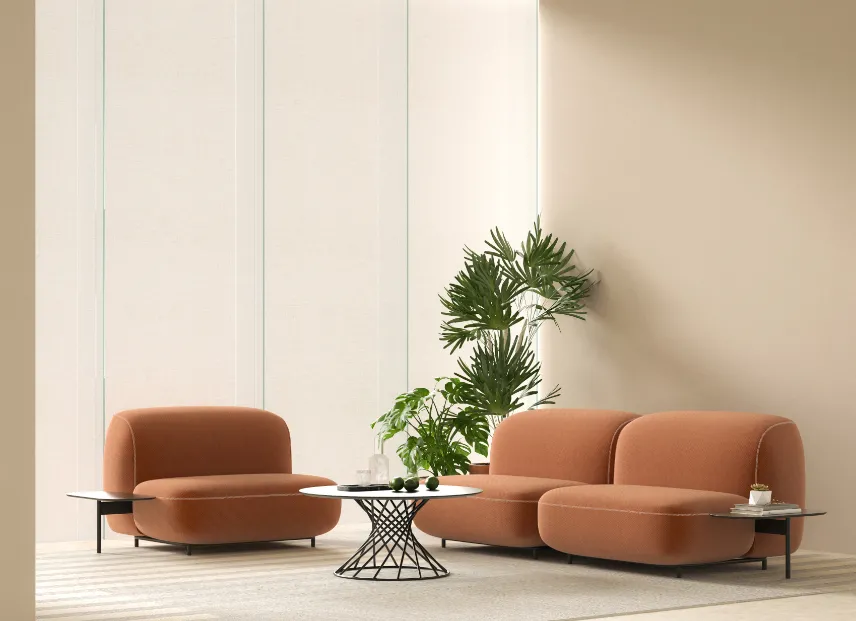 ब्रिक सोफा बहुमुखी मॉड्यूलर कार्यक्षमता के साथ उदारतापूर्वक गोलाकार रूपों को जोड़ता है, जो कार्यालय में प्राकृतिक, आरामदायक, घर जैसा माहौल लाता है। विश्राम के लिए जगह बनाकर, यह रचनात्मकता को प्रेरित करता है और मूड को बेहतर बनाता है।