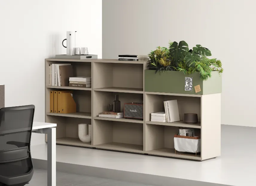 2、प्लांटर कैबिनेट - भंडारण के साथ हरियाली को एकीकृत करता है, स्थान के उपयोग में सुधार करते हुए कार्यस्थल की दृश्य अपील, आराम और वायु गुणवत्ता को बढ़ाता है।