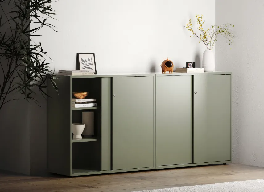 3、सस्पेंडेड-डोर कैबिनेट - आधुनिक हैंगिंग डोर डिज़ाइन जगह बचाता है और कार्यालय के अंदरूनी हिस्सों में सुंदरता जोड़ता है। चिकनी रेखाएं और आसान पहुंच इसे शैली और व्यावहारिकता के संयोजन के साथ कॉम्पैक्ट कार्यालय सेटअप के लिए एकदम सही बनाती है।