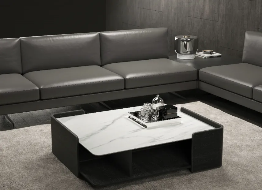 गोल कोनों के साथ एक फ्रेम-किनारे वाले डिज़ाइन की विशेषता, रॉक कॉफी टेबल एक साफ और सुरुचिपूर्ण सिल्हूट प्रस्तुत करती है। इसका 6 मिमी पतला सिरेमिक स्टोन टेबलटॉप लक्जरी और न्यूनतावाद को जोड़ता है, भंडारण और सौंदर्यशास्त्र को सहजता से एकीकृत करता है।